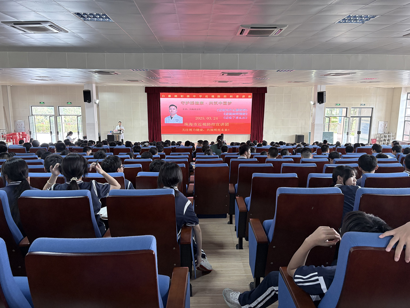 最后刘主任提醒大家,尤其是近视的同学,应定期检查视力,每学期至少进行一次专业验光,早发现、早干预,防止近视加深。刘主任表示,宣讲团将持续走进中小学、为不同年龄段的学生科普近视防控领域的知识,切实提升学生自主护眼能力,助力学生健康成长。