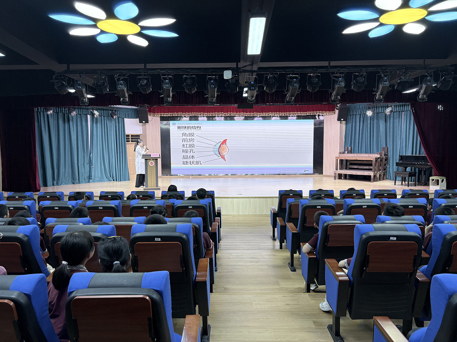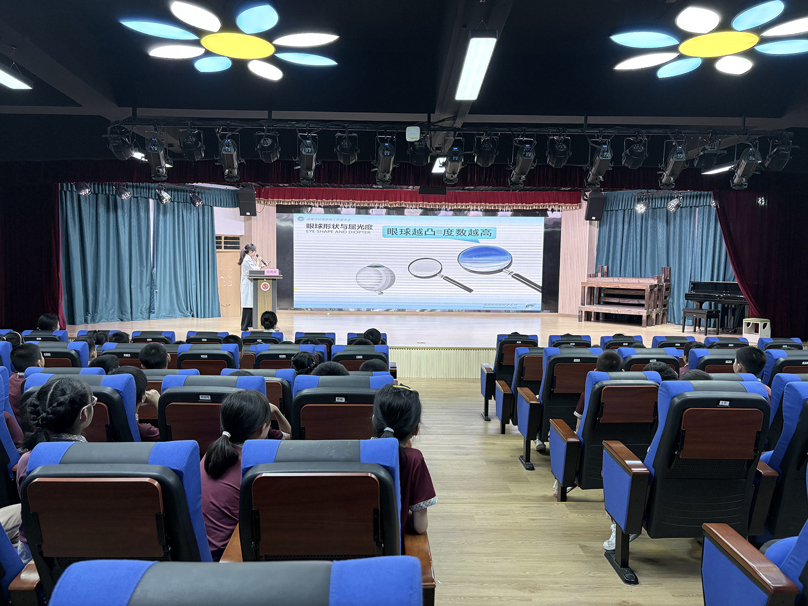 当“为什么要预防近视?” 几个字跃入讲座的大屏幕,立刻引起了台下的同学们的好奇与思考。 同学们带着这个问题聆听了由珠海市香洲区人民医院眼视光专科张艳琳的科普分享,她列举生活实例,从近视对日常生活、学习效率的影响到对未来职业选择的限制及对眼部健康的危害。让孩子们直观地感受到近视带来的负面影响,深刻认识到近视防控的重要性。