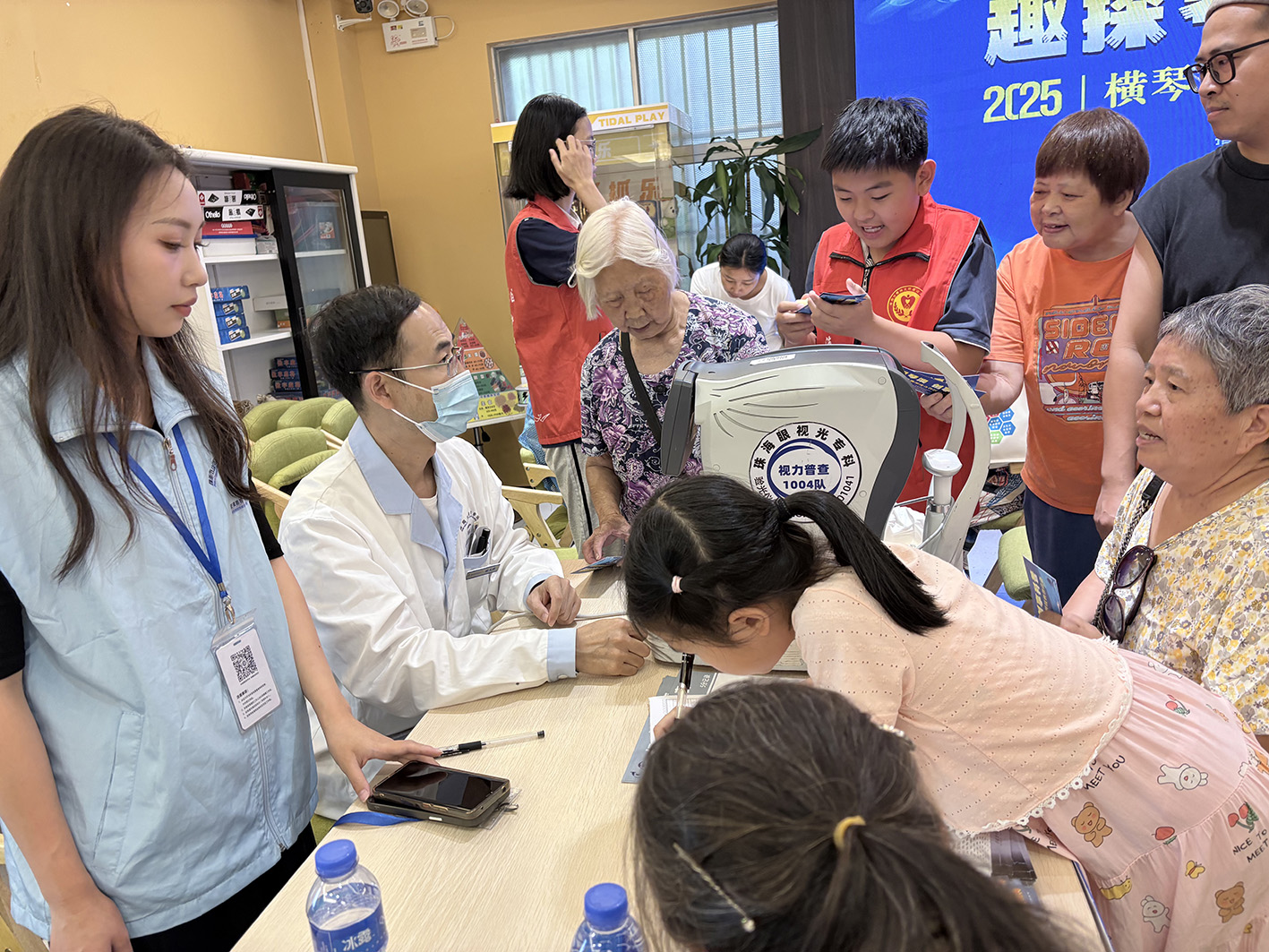 视力健康关乎人们的生活质量,为提高社区居民对视力健康的重视,方便居民检查视力,5月10日,星系眼视光专科参加“趣探琴澳,创享科普”活动,走进荷塘社区,开展便民视力义诊活动。