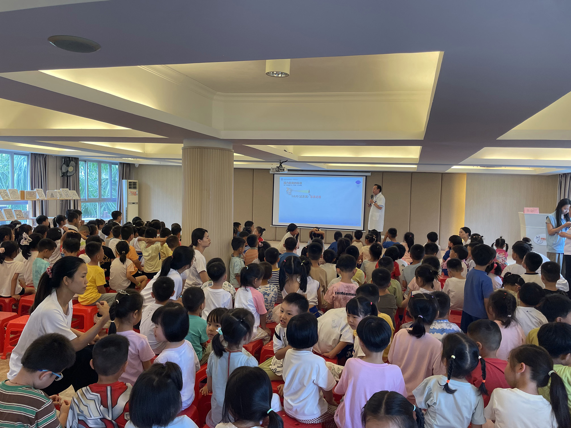 本次讲座由珠海近视防控宣讲团团长、星系眼视光专科吴金广主任亲自主讲。讲座现场,吴主任针对幼儿视力发育特点,向孩子们和家长们讲解了眼睛的构造、近视形成的原因等知识。