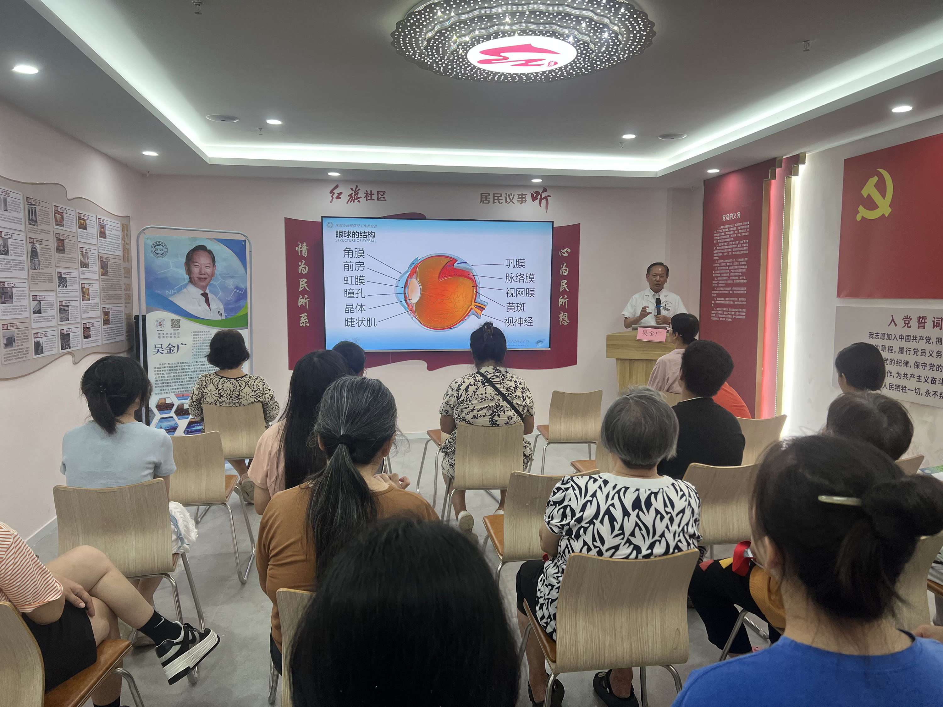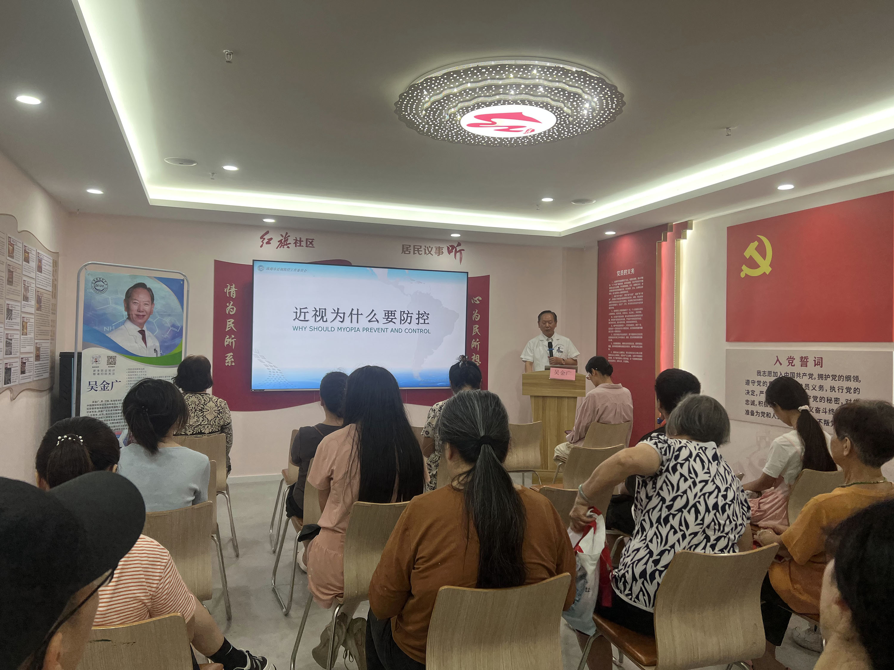 7 月 8 日,一场贴近社区居民生活的近视防控科普活动在红旗社区党群服务中心顺利开展。活动现场聚集了来自社区周围的众多居民,大家齐聚一堂,共同学习近视防控知识。
