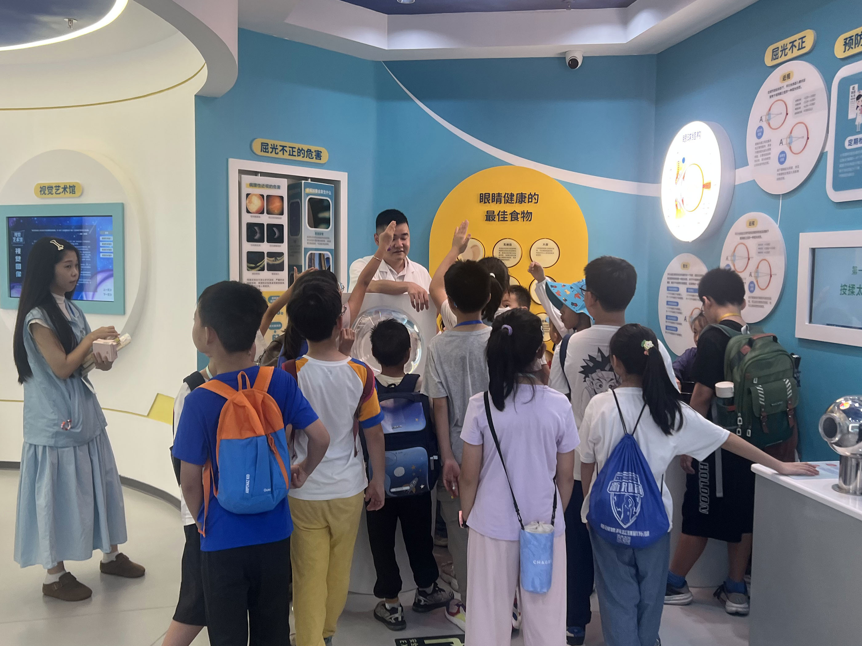 8月8日,珠海市眼健康科普馆迎来了一批小访客 —— 海湾学校二十余名小学生组成的研学团。