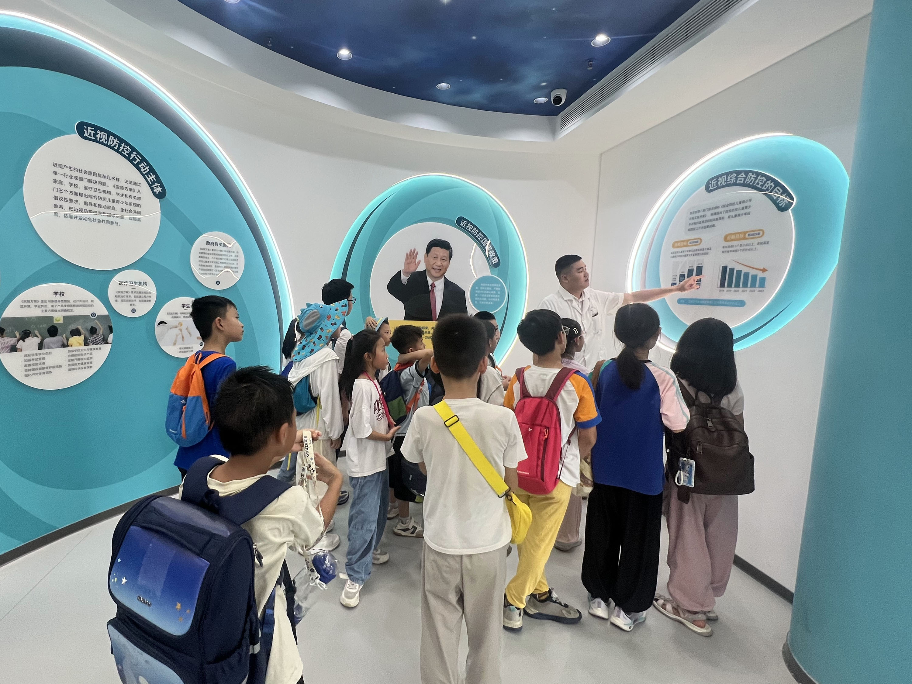 本次研学活动由该校老师领队,同学们在科普馆专业讲解员的带领下,通过系统讲解、趣味互动与健康检查相结合的方式,沉浸式学习眼健康知识。
