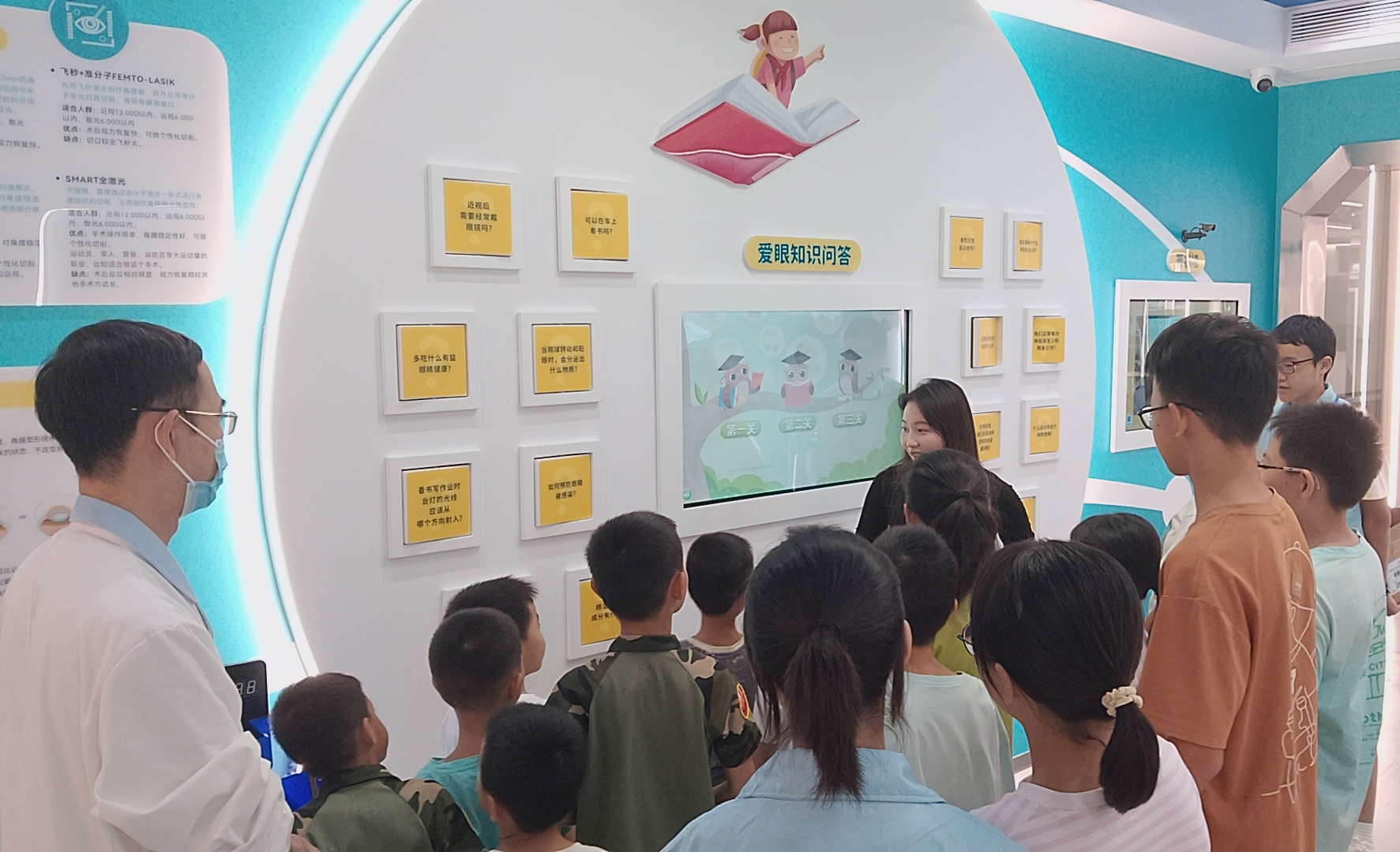 紧接着,讲解员详细介绍了对眼睛有益的食物,并针对青少年近视预防的关键要点展开科普,从正确读写姿势、控制电子产品使用时间到保证充足户外活动等等。现场还设置了眼健康知识互动问答环节,孩子踊跃举手,在问答互动中进一步巩固了所学知识。