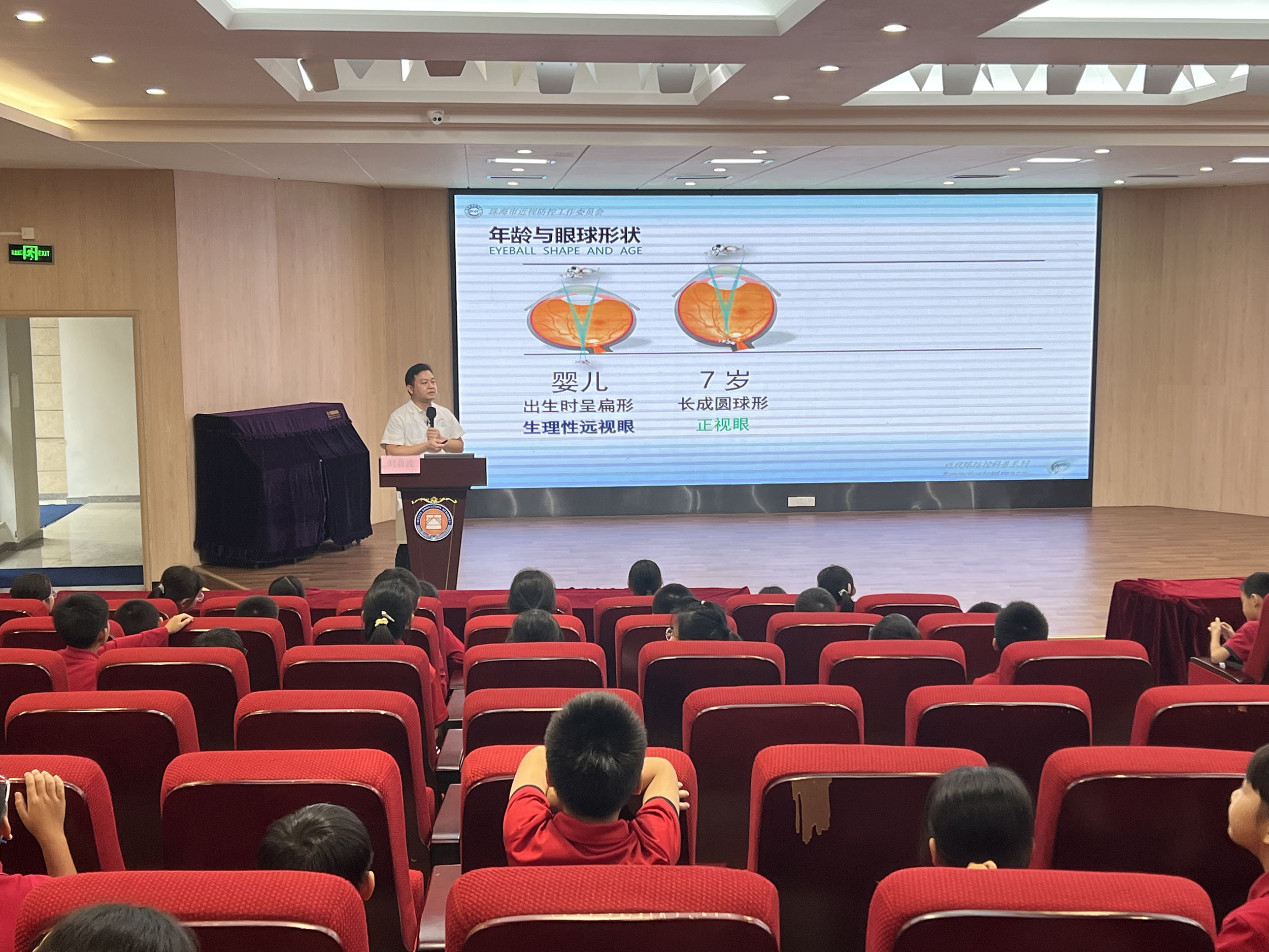 讲座上,刘主任向同学们介绍了现阶段儿童青少年的近视现状,指出近视并非单纯的视力模糊,还会对同学们的学习生活与长远健康产生双重影响。高度近视可能引发视网膜裂孔、黄斑病变等严重眼底疾病,甚至导致不可逆的视力损伤,因此小学阶段的近视预防非常重要。