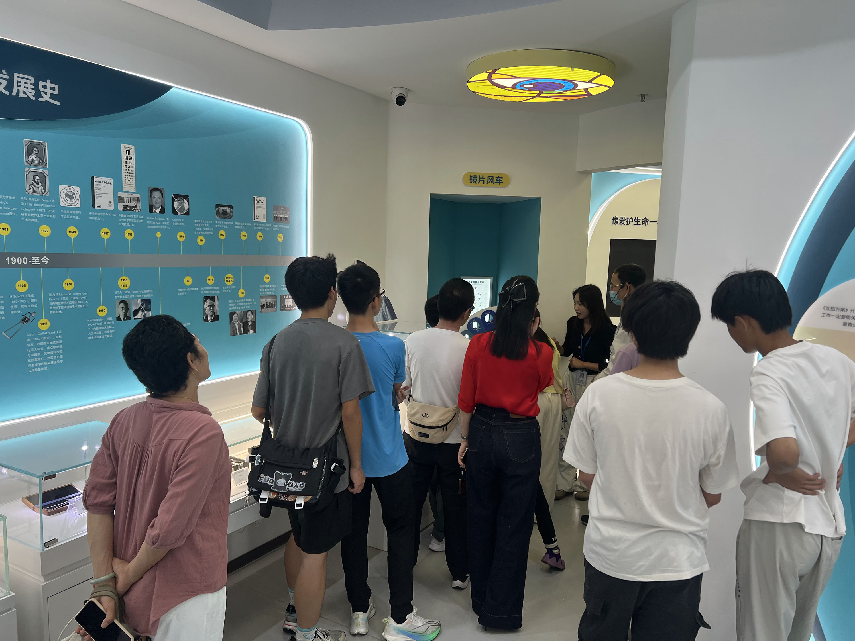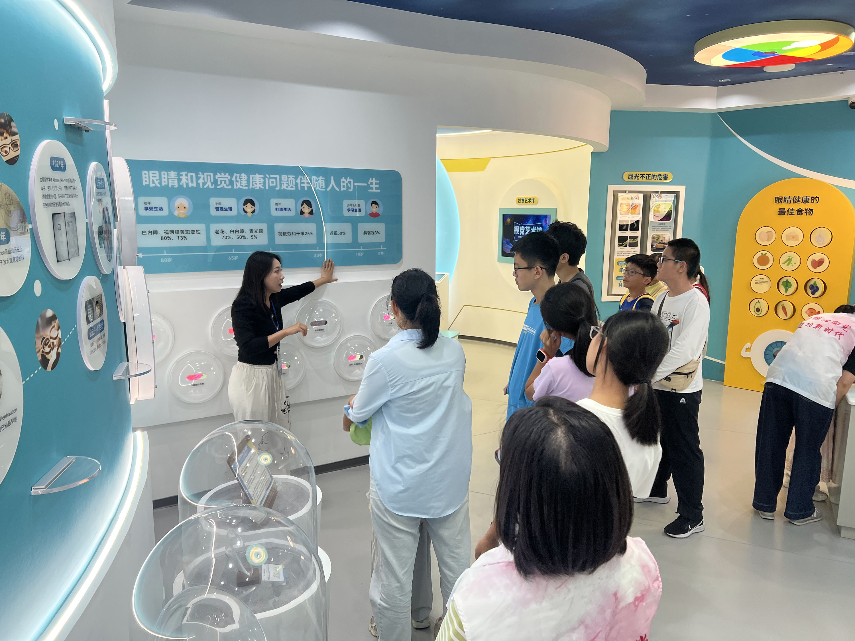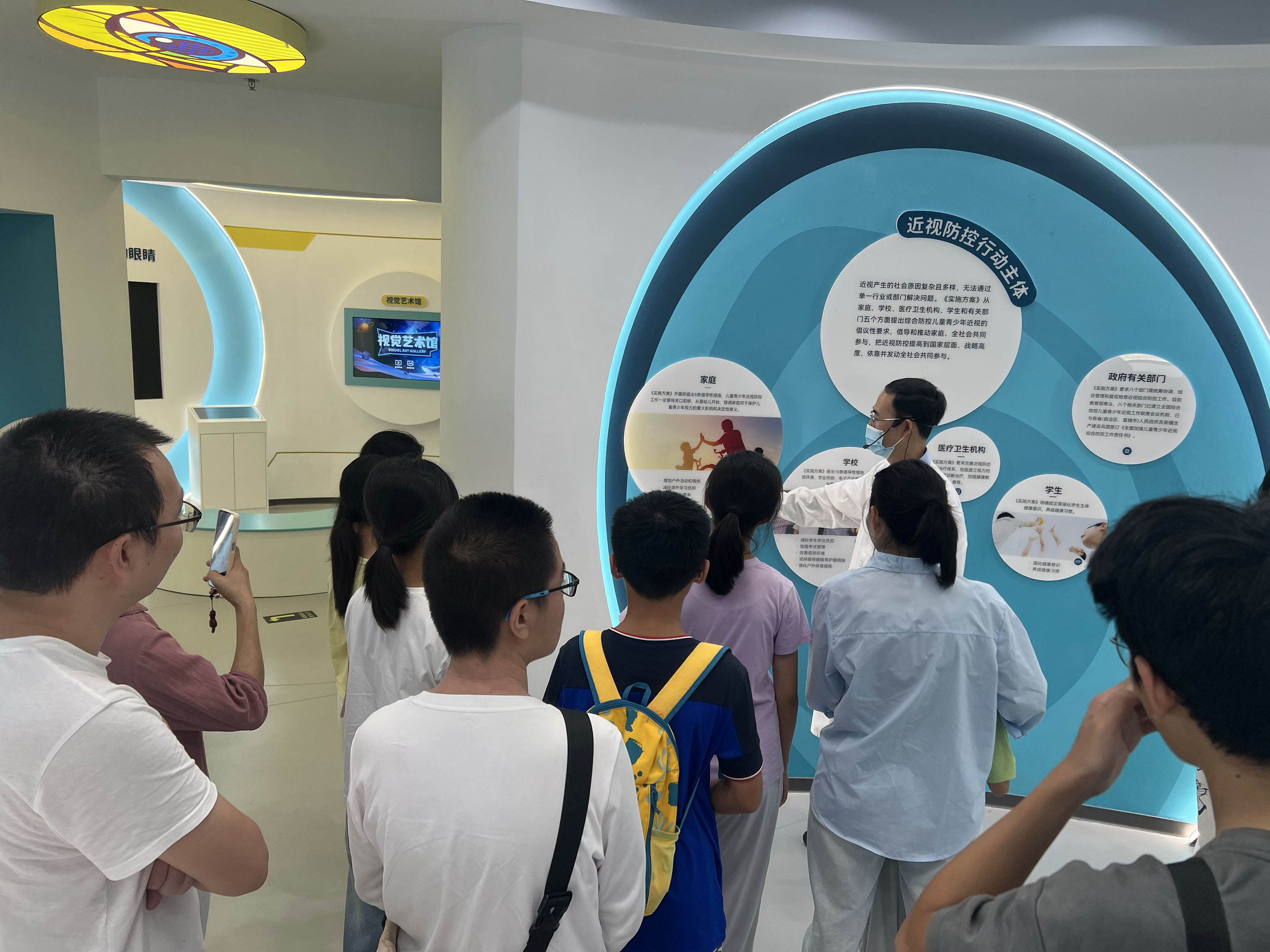 活动伊始,首位讲解员以详实的数据向参观家庭介绍了当前儿童青少年近视高发的严峻态势,让家长们直观感受视力保护的紧迫性与重要性。随后,大家一同驻足眼视光发展墙前,在讲解员的细致解读中,回溯眼视光学科的发展历程;展区内陈列的各类古董眼镜展品,让家长和孩子近距离触摸历史,真切体会到眼镜的发展变迁与科技进步给眼健康领域带来的变化。