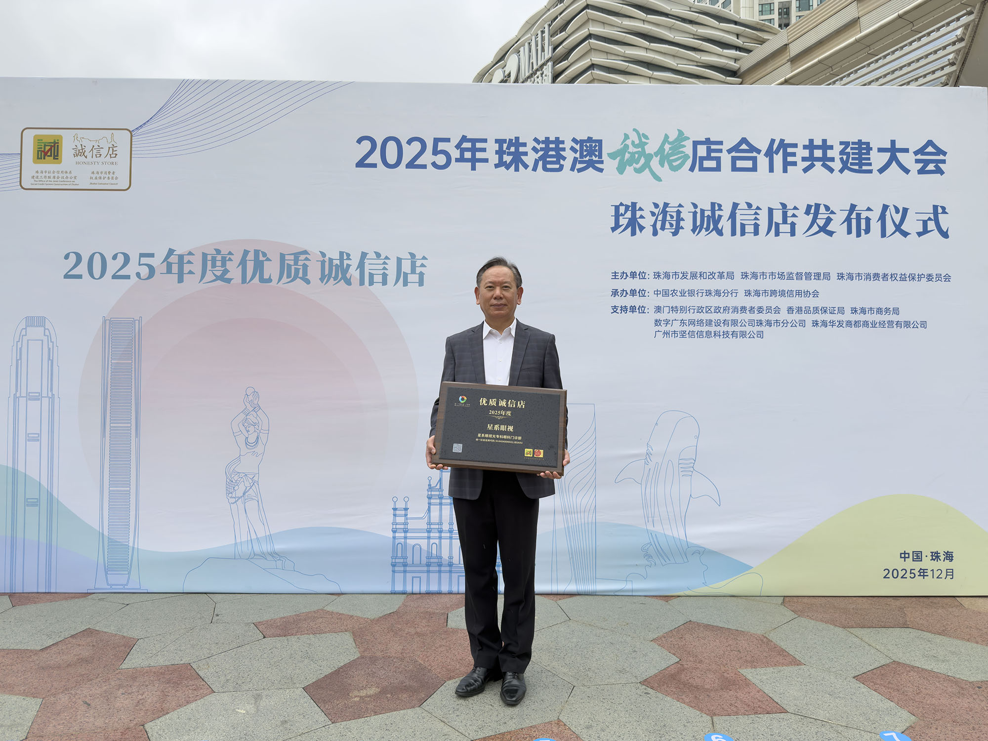 珠港澳诚信店合作共建是粤港澳大湾区规则衔接、机制对接的生动实践。此次大会发布了2025年珠港澳诚信店合作共建50家优质诚信店名单和150家珠海诚信店名单。星系眼视光专科眼科门诊部成功获评2025年度优质诚信店。