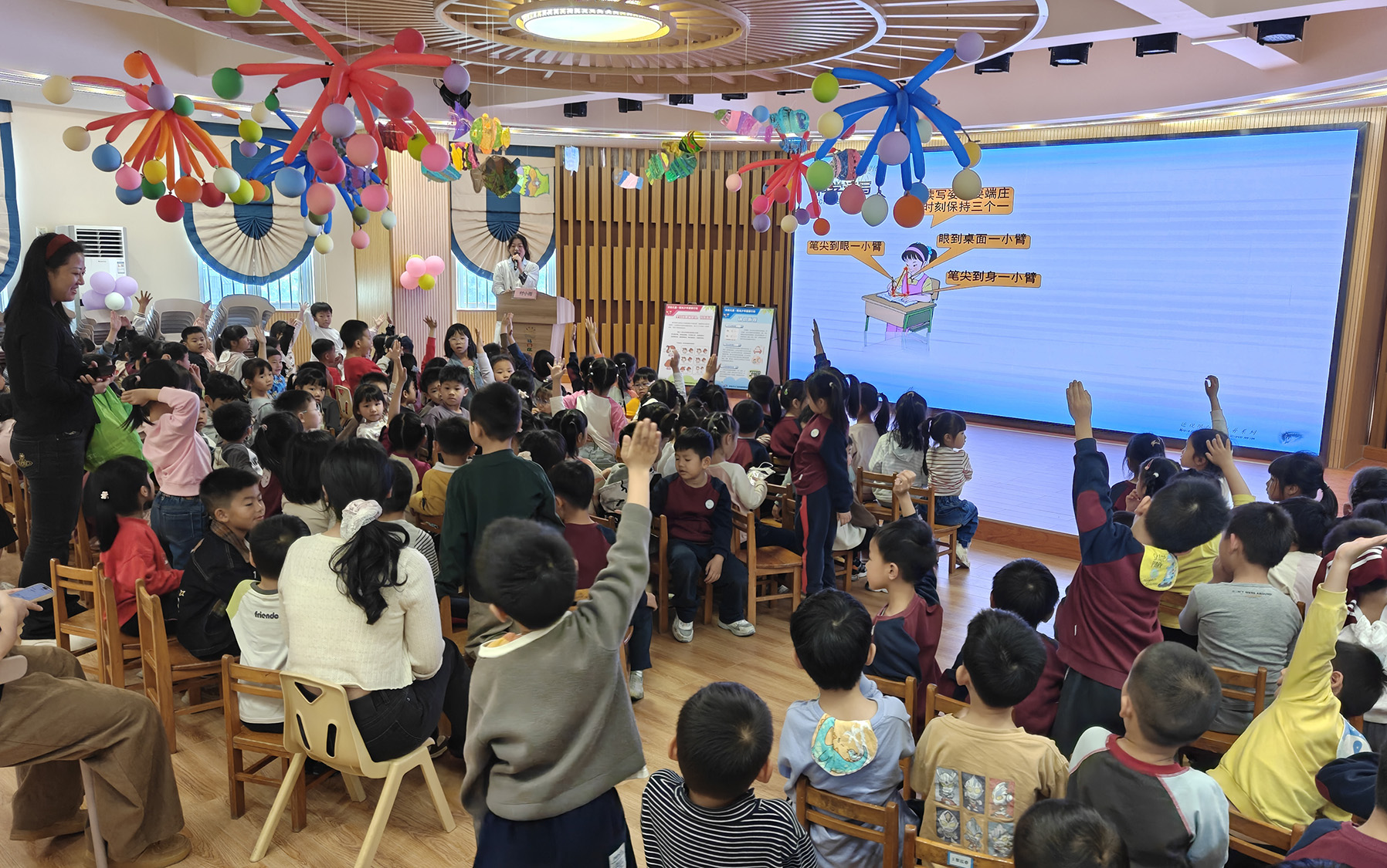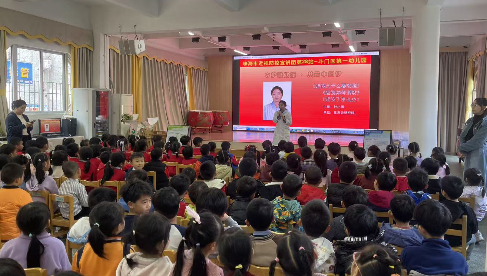 针对幼儿园小朋友,医护团队采用趣味动画及浅显易懂的语言讲解眼睛的基本功能,引导小朋友们少看电子产品、保持正确坐姿的良好习惯,树立起“爱眼护眼”的初步意识,守护宝贵的远视储备。现场,宣讲员还带领孩子们做趣味问答,在欢声笑语中传递护眼知识,充分调动了幼儿的参与积极性。