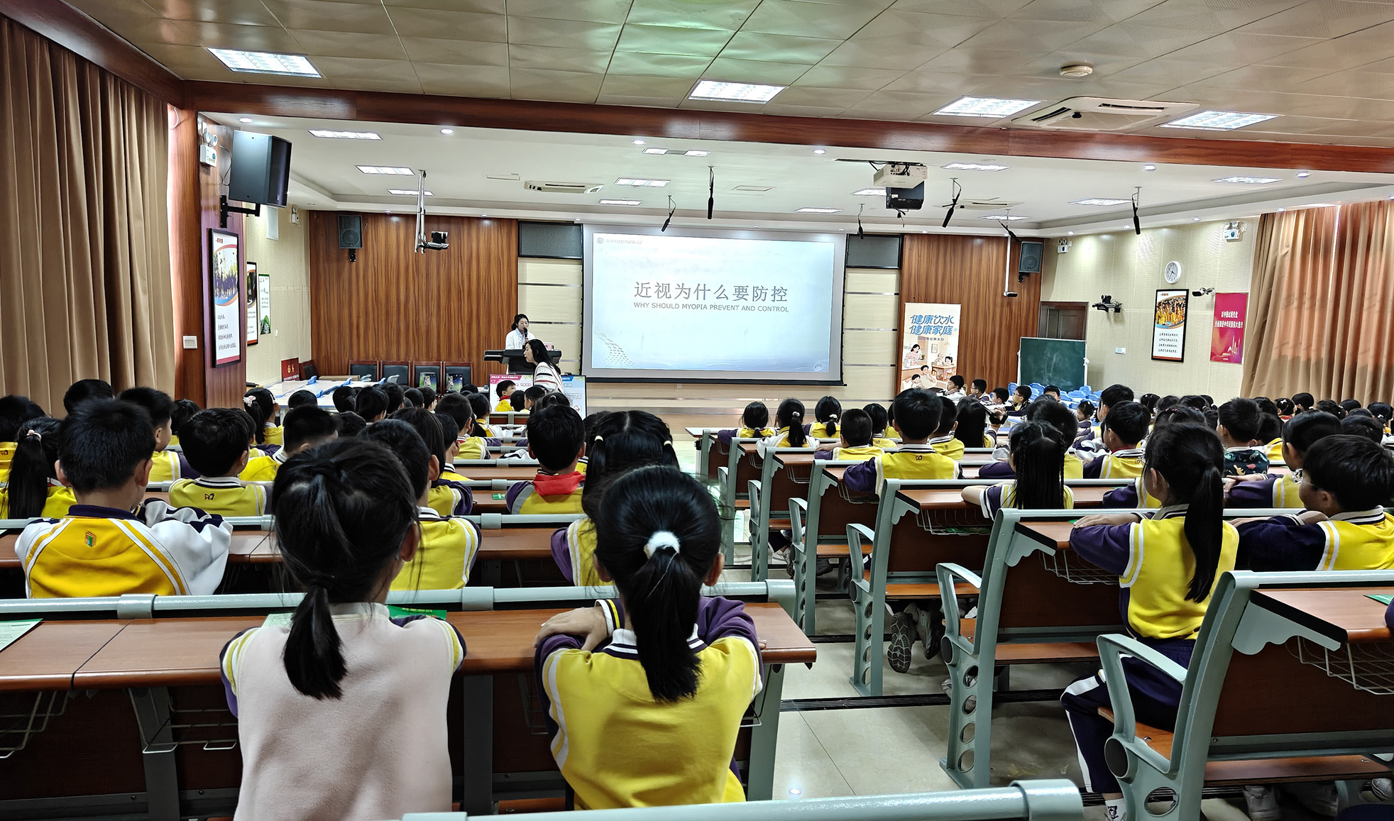 在预防近视环节,宣讲员强调了每天日间户外活动不少于2小时的重要性;尤其学习任务繁重的同学更要注意学习间隙对眼睛的放松和休息。针对已经近视的学生,宣讲中着重讲解了近视后如何控制度数加深的问题,强调一旦发现视力异常,应及时到医院检查矫治,避免近视加重发展为高度近视。